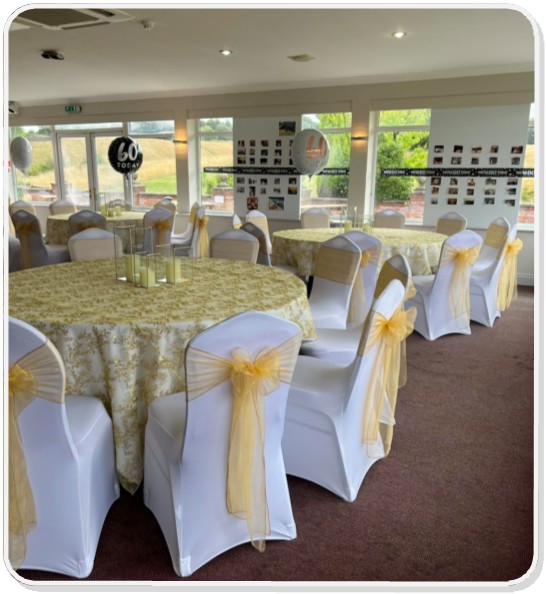 🎉 Up to 60 Chair Covers In White, Ivory or Black: more can be added in required or you can book less if needed.